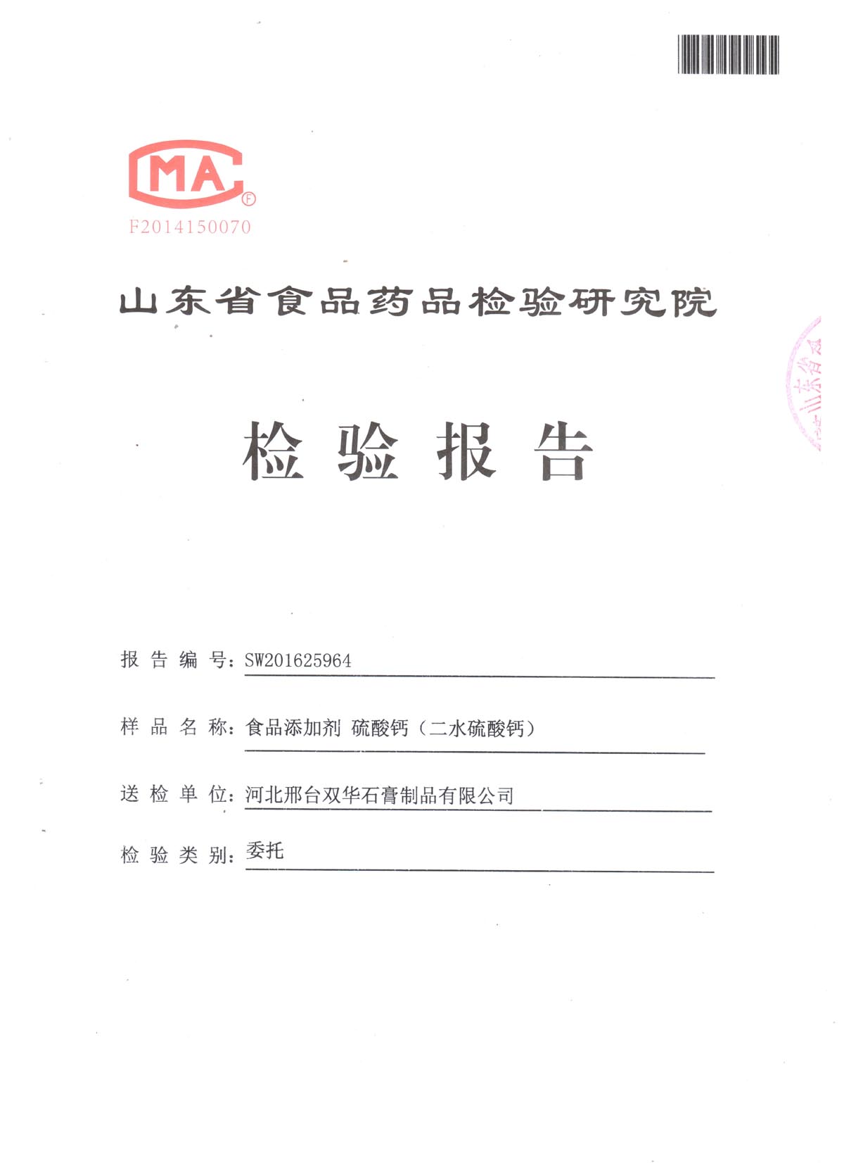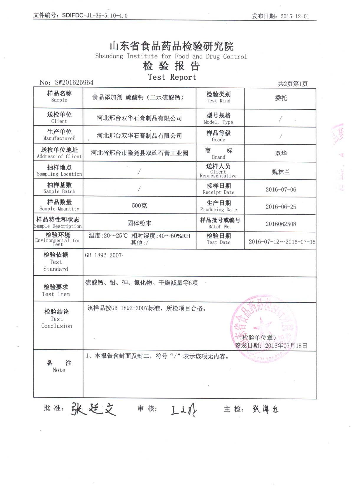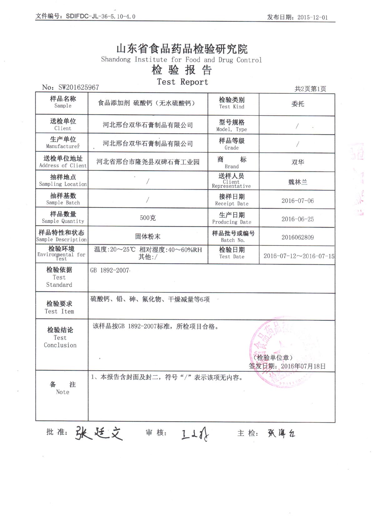 官方检测报告-二水-2016-第一页