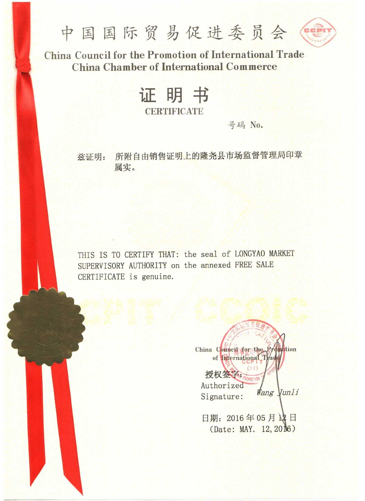 自由销售证明