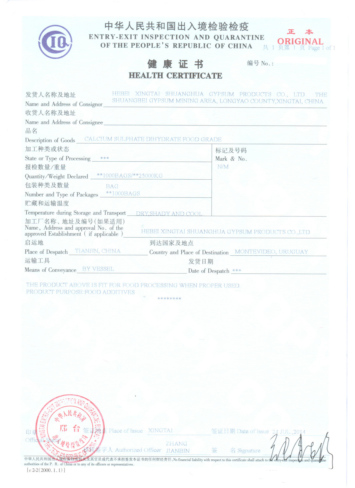产地证-中韩-商检局